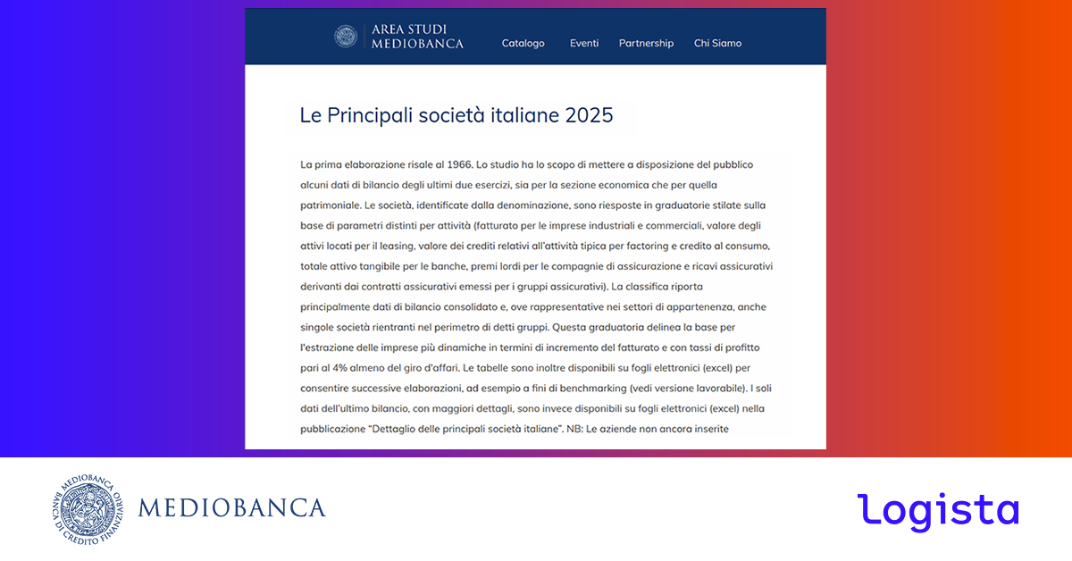 Logista tra le principali società italiane del 2025 nella classifica di Mediobanca